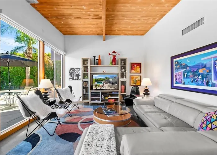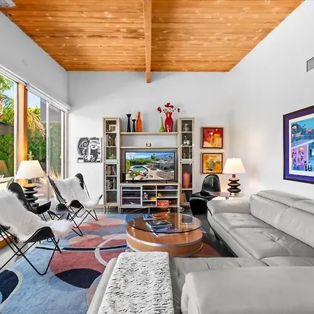 De luchthaven Palm Springs is binnen 10 minuten rijden te bereiken en natuurattracties zoals de Tahquitz Canyon liggen binnen 10 minuten met de auto. Het vakantiehuis is gesitueerd binnen een paar straten van het Palm Springs Square Shopping Center, terwijl Indian Cyn at Via Escuela busstation op 550 meter ervandaan is. Het Victoria Park bevindt zich ook op 6 minuten lopen van de villa.